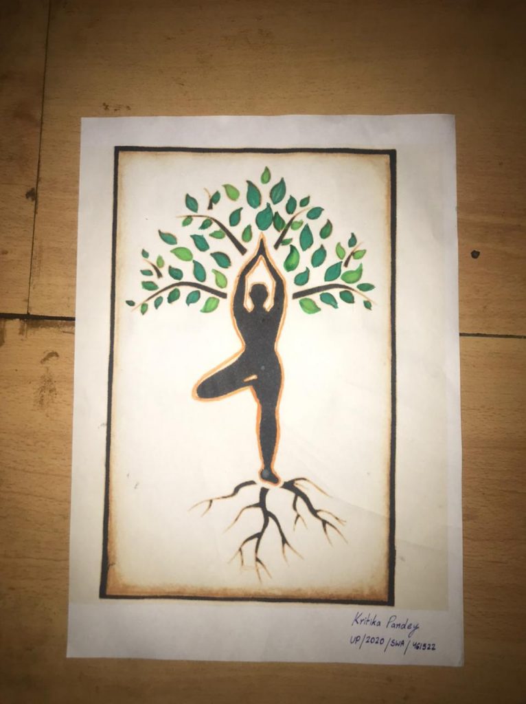 I sergeant Bhanushreya sharma e from ITI Faridabad, 5 HAR BN NCC Gurugram, GP HQ Rohtak, Directorate - PHHP&C, wish to convey a message regarding doing yoga regularly with your family.