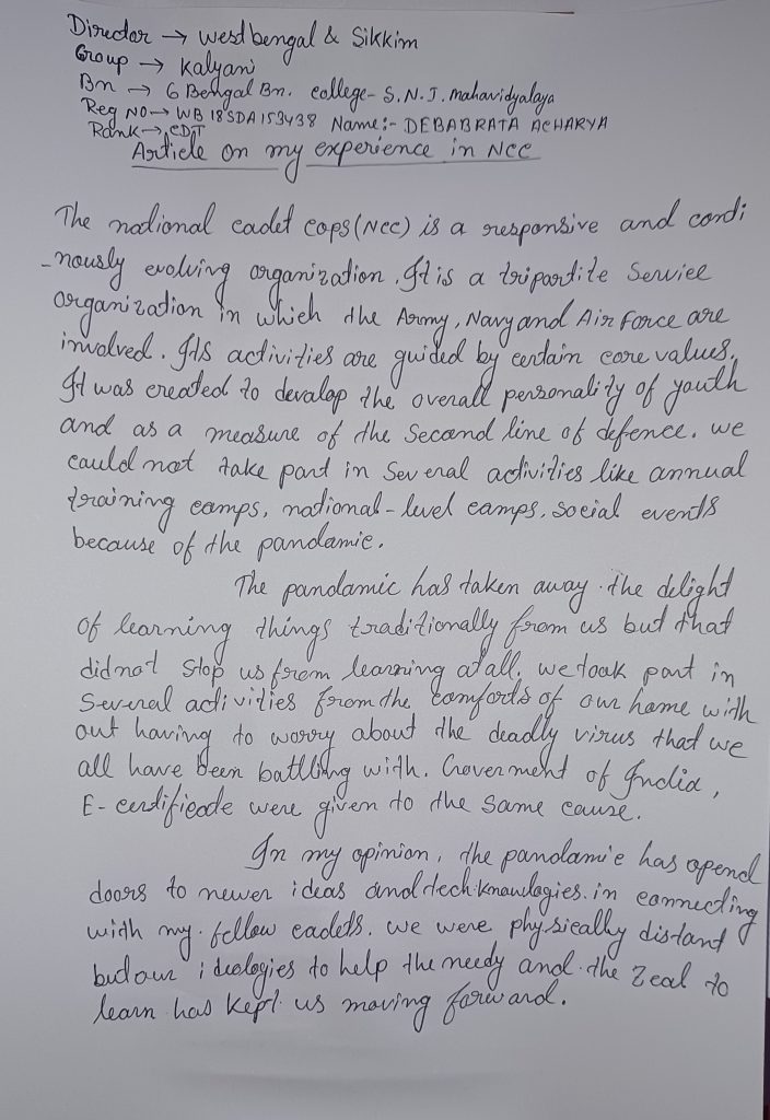 In my opinion the pandamic has opened doors to newer ideas and technology in connecting with my fellow cadets.we were physically distant but our ideologies to help the needy and the zeal to learn has kept us moving forward.