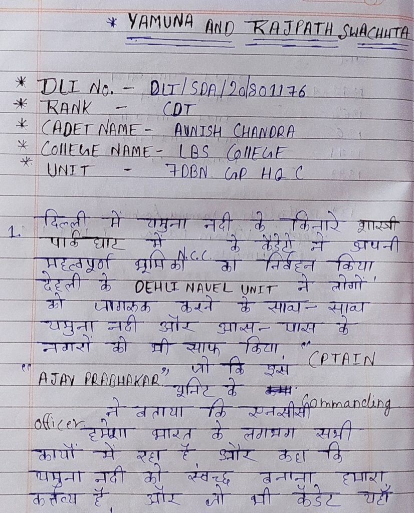 Name - Aadi Gupta Unit - 86 UP BN UP/20/SD/A/617740 School - Guru Nanak Inter College, sre