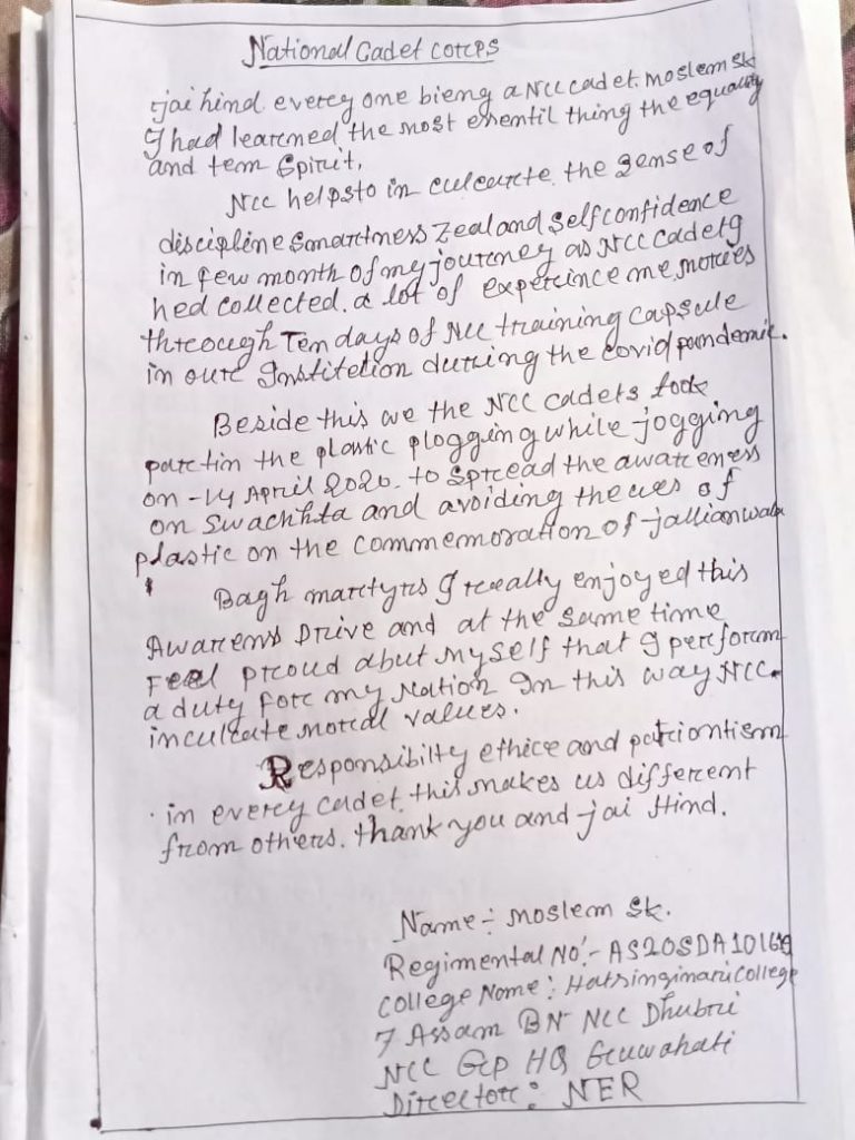 I cadet Upashana Duarah from 11 ASSAM GIRLS ( I ) COY NCC,Sibsagar Girls College Regiment no: AS20SWA128616