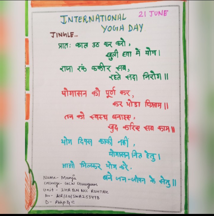 I performed these activitiesat myhome because of corona virus otherwise i perform these activitiesoutofmyhome. I planted a shrubinmyhome plant pot and i performed asana of yoga. I learned these activities at my ncc unit and my sir inspired me a lot.