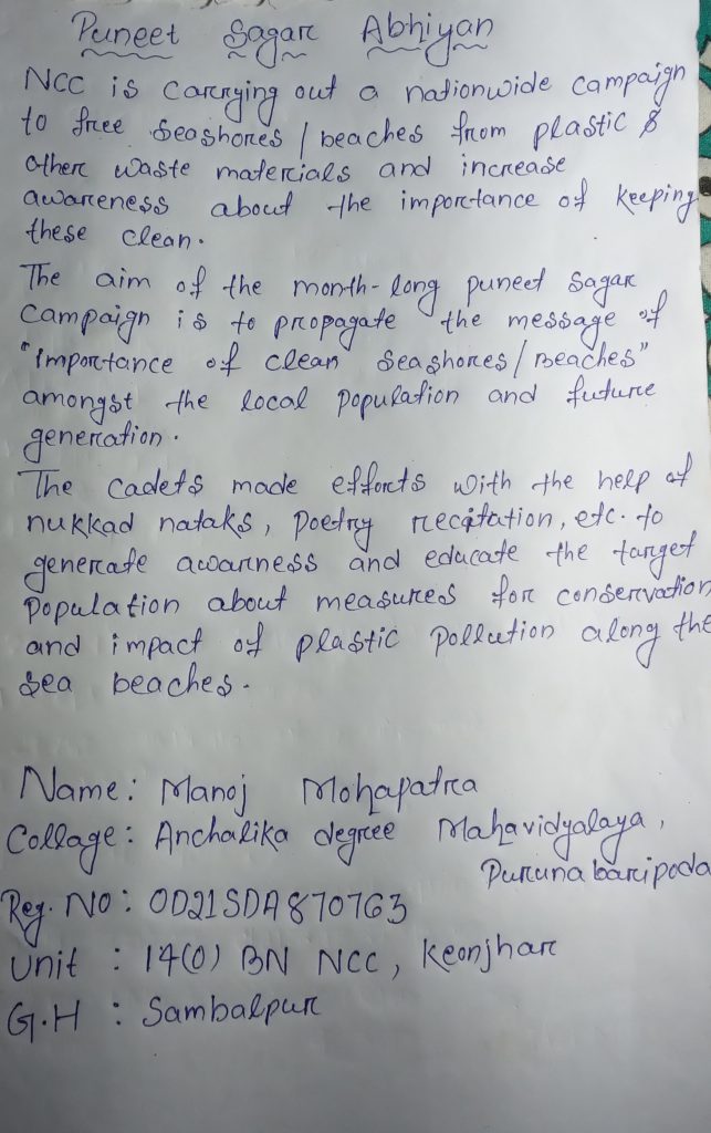 I am cadet Harish chandra behera From 14(O) BN NCC, keonjhar