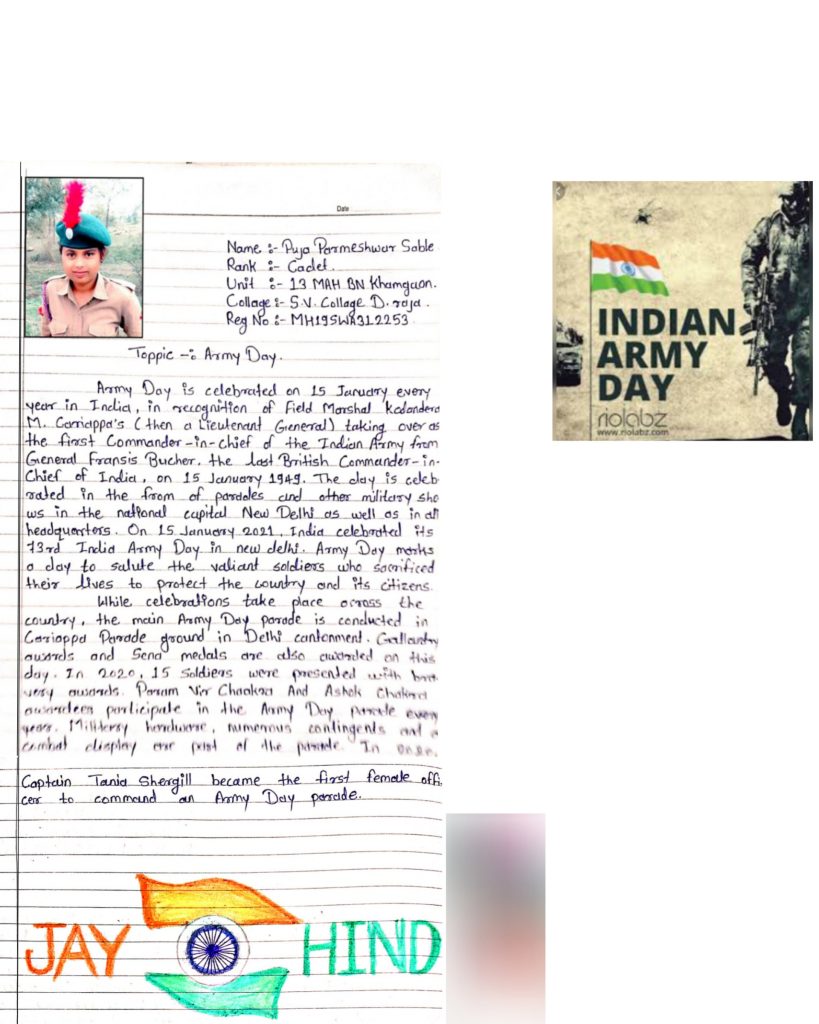 Rank&Name: CDT.P.Harini , Reg no: TN20SWA833207 Clg name: Sri Sarada College For Women (Autonomous) , Salem – 16. 12(TN)BN NCC, KOVAI GROUP, TN,P& AN DTE .