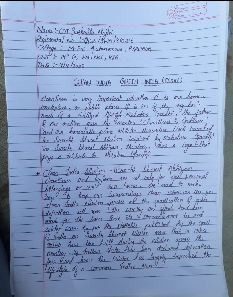 SUO MONALISHA SAHU REGD NO:-OD19SWA870127 KARANJIA AUTONOMOUS COLLEGE 14 ODISHA BATTALION NCC KEONJHAR GROUP:- SAMBALPUR DIRECTORATE:- ODISHA, BHUBANESWAR