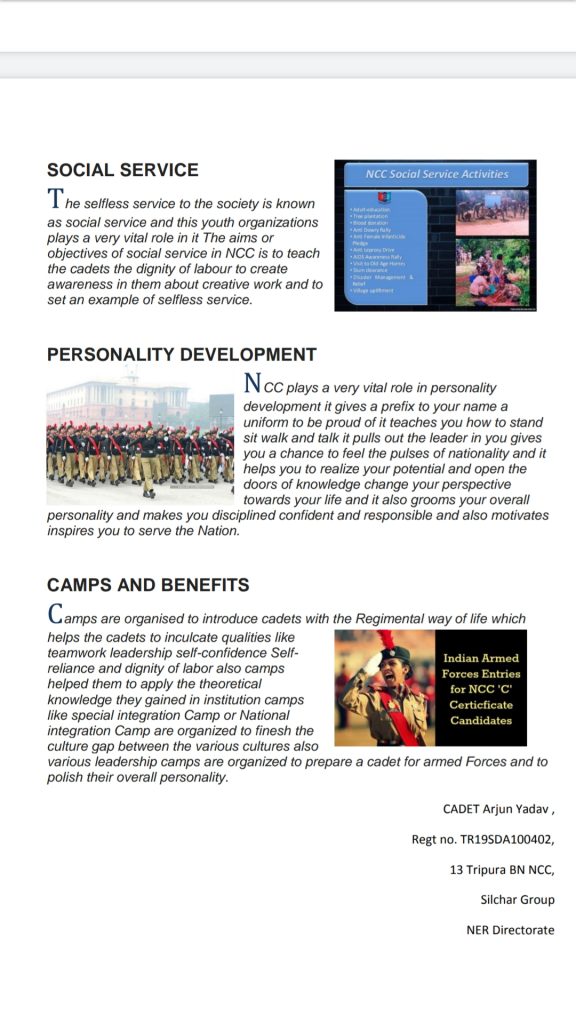 I AM CADET ARJUN YADAB REGT. NO TR19SDA100402 OF 13 TRIPURA BN NCC FROM RKM COLLEGE AND I AM VERY MUCH EXCITED.