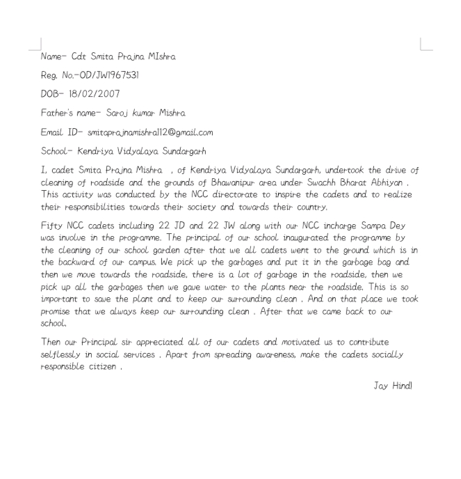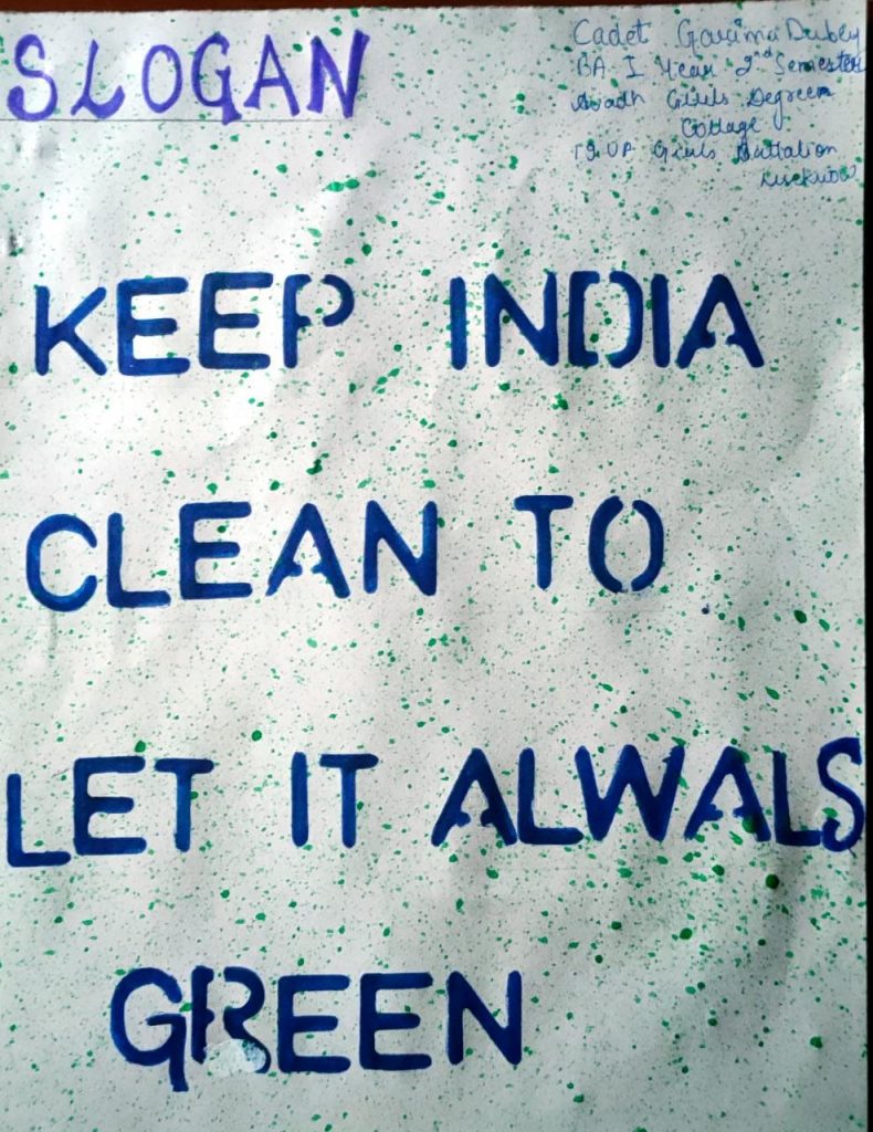 Cadet Anjali Rai 19 UP GIRLS BATTALION NCC LUCKNOW AVADH GIRLS DEGREE COLLEGE A small effort by the cadets of 19 up girls bt of Avadh Girls Degree College on Environment day
