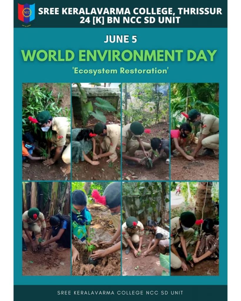 I'm a cadet of SREE KERALAVARMA COLLEgGE, THRISSUR. 24 [K] BN NCC SD UNIT. In connection with world environment day, we conducted several activities like tree plantation, plantation with siblings and cleaning of surroundings etc.