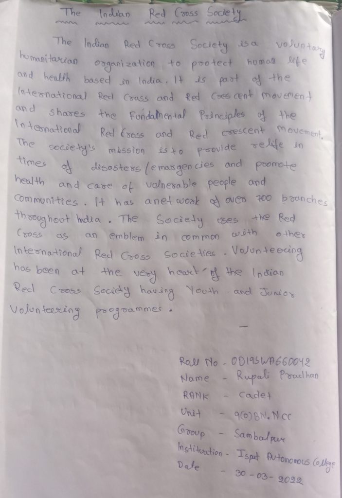 NAME- CADET SWETAPURNA MAHAPATRA REGT NO -OD20SWA660096 ISPAAT AUTONOMOUS COLLEGE 9(0) BN NCC