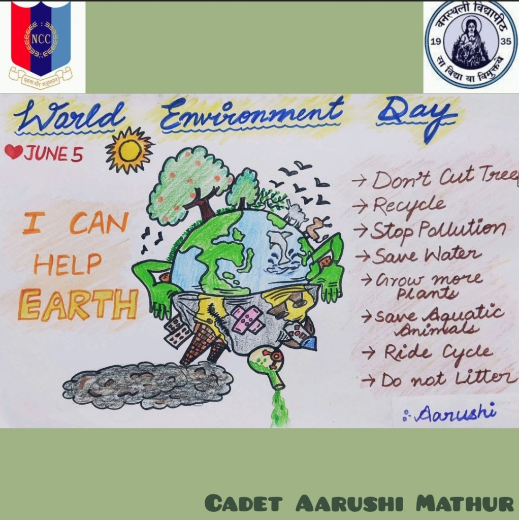 I am Aarushi Mathur, cadet from 1 RAJ GIRLS BATTALION Banasthali Vidyapith. I have made these posters on World Environment day.