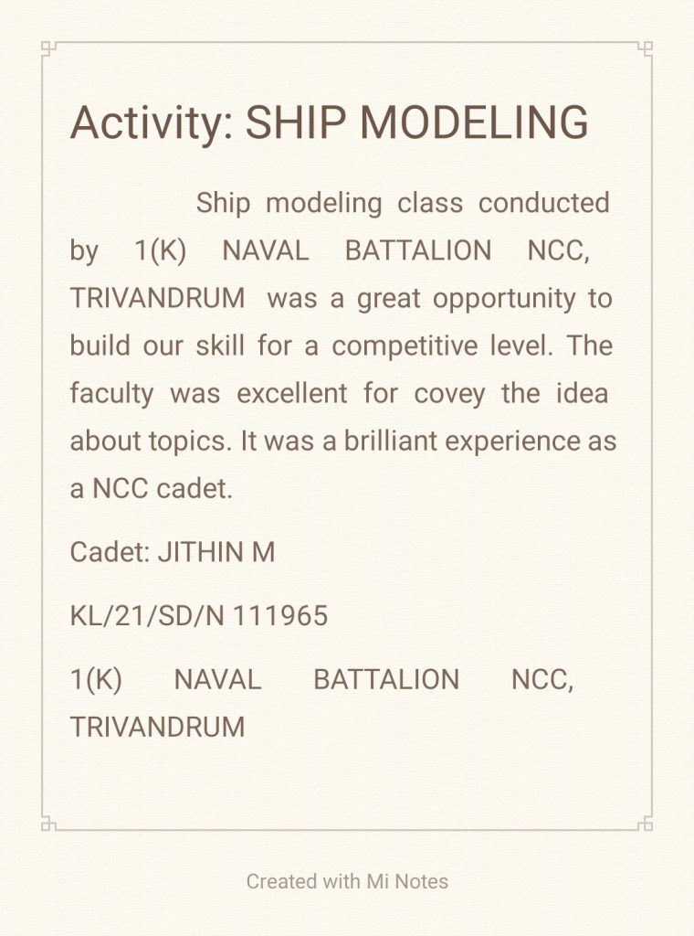 Cadet :JITHIN M 1(K) NAVAL BATTALION NCC, TRIVANDRUM