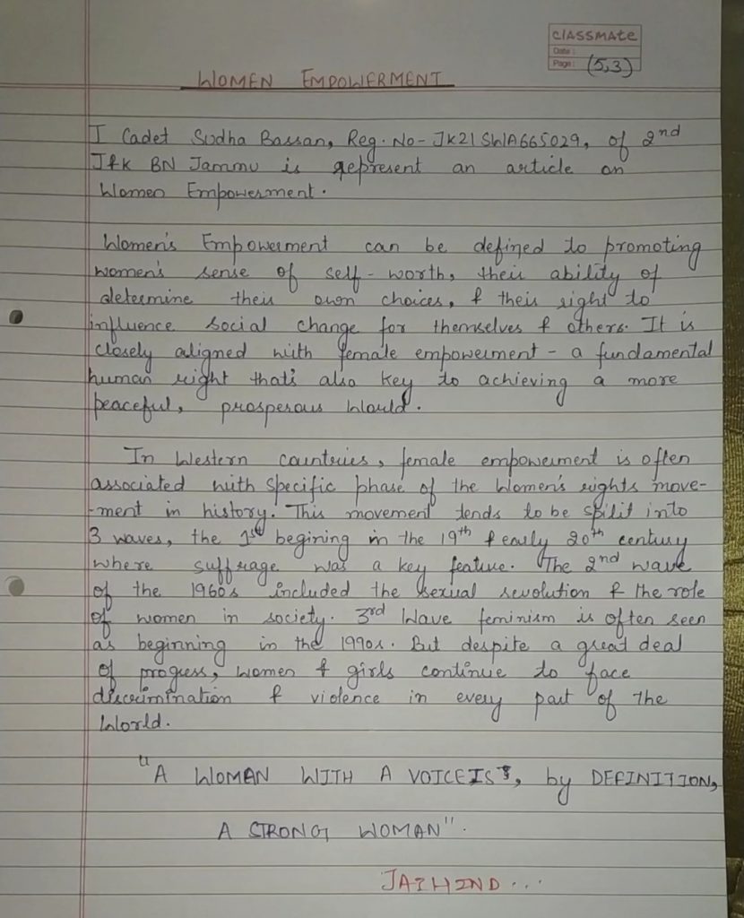 By cadet _SUDHA BASSAN student of GCW. Parade ground jammu