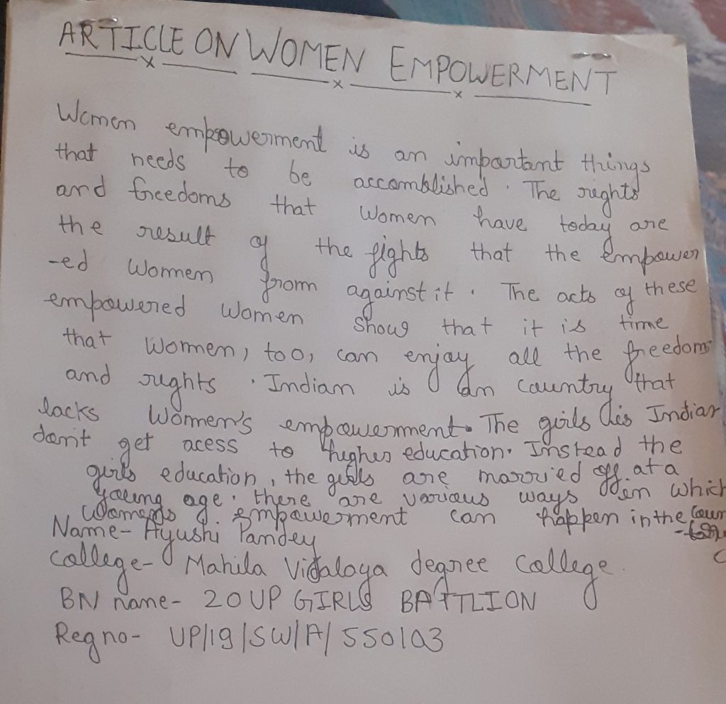 I am Ayush Pandey of Mahila Degree College Aminabad Lucknow from 20 UP GIRLSBATTALION NCC group headquarter Lucknow Uttar Pradesh