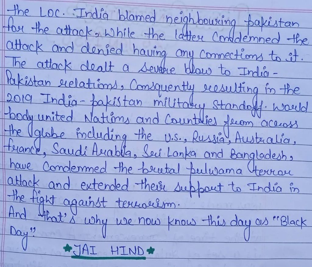 Jai hind, I cadet Ritika Sharma want to represent an article on Black Day.