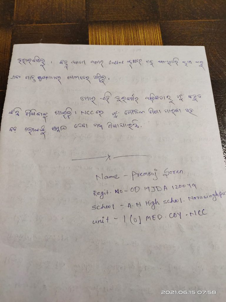 CDT Premraj Soren A.N.High School Unit:1(O)MED.COY.NCC, Cuttack