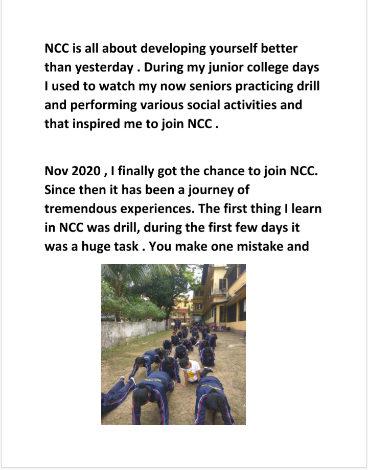 Myself cadet Pragati Dey . I am a first year cadet of 62 ASSAM (G) BN NCC, NER directorate.
