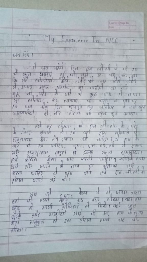UNIT :- 13, GUJ BN NCC V.V.NAGAR I'M JANKI DARJI FROM 13 GUJ BN NCC V.V.NAGAR THE ARICAL IS ABOUT MY EXPERIENCE IN NCC