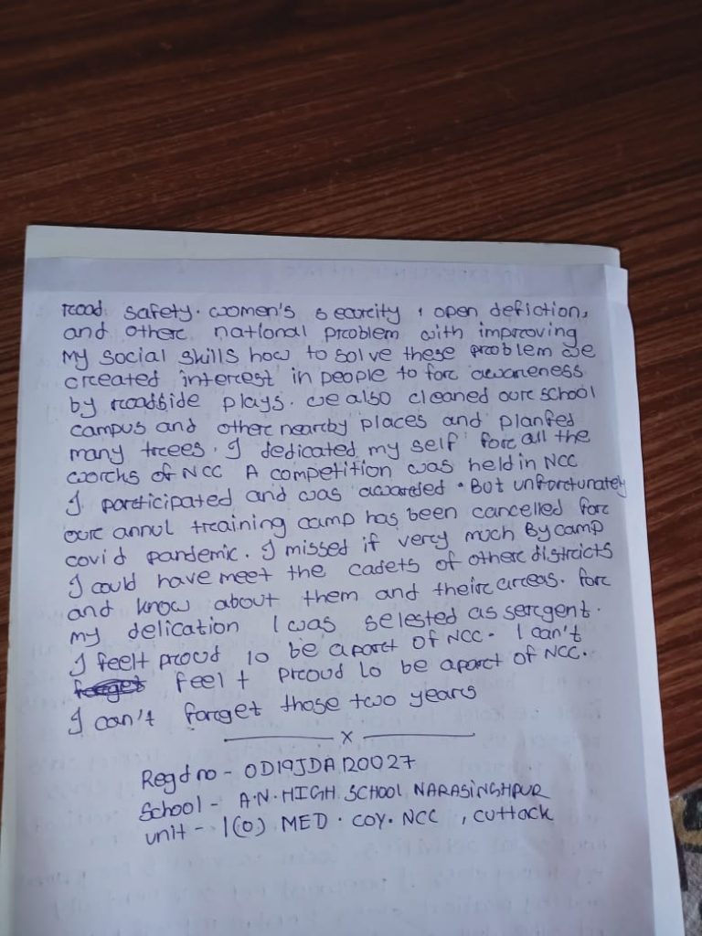 CDT Sahil Mohanty A.N.High School, Narasinghpur Unit:1(O)MED.COY.NCC, Cuttack