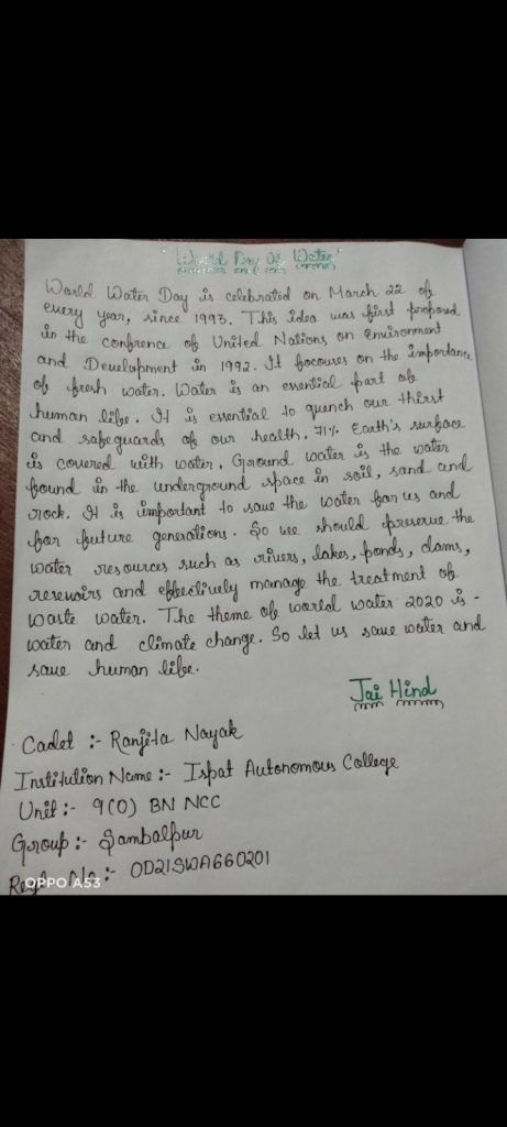 CADET-RANJITA NAYAK INSTITUTIONS NAME - ISPAT AUTONOMOUS COLLEGE UNIT - 9 ( O ) BN NCC GROUP - SAMBALPUR DTE - ODISHA REGT. NO - OD21SWA660201