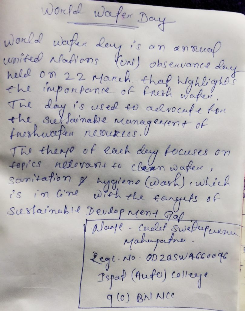 Name _SWETAPURNA MAHAPATRA REGT. NO_OD20SWA660096 ISPAAT AUTO COLLEGE 9(0) BN NCC