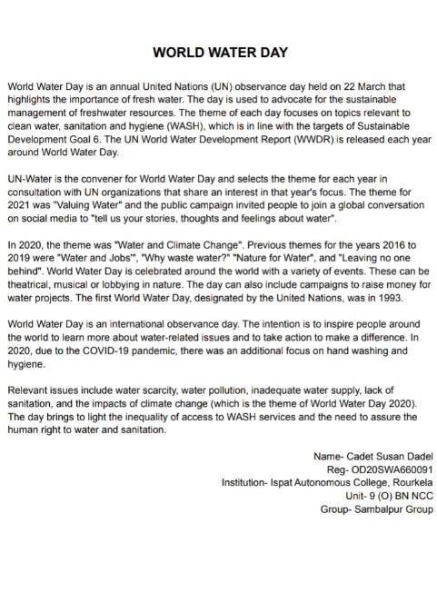 Name- Cadet Susan Dadel Reg- OD20SWA660091 Institution- Ispat Autonomous College, Rourkela Unit- 9 (O) BN NCC Group- Sambalpur Group