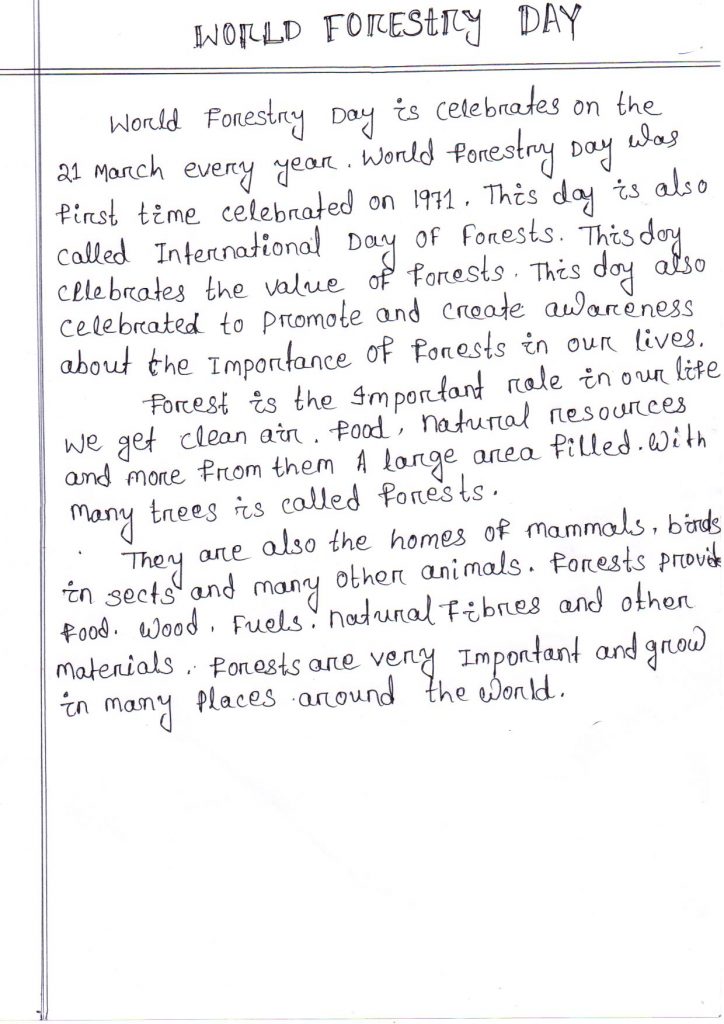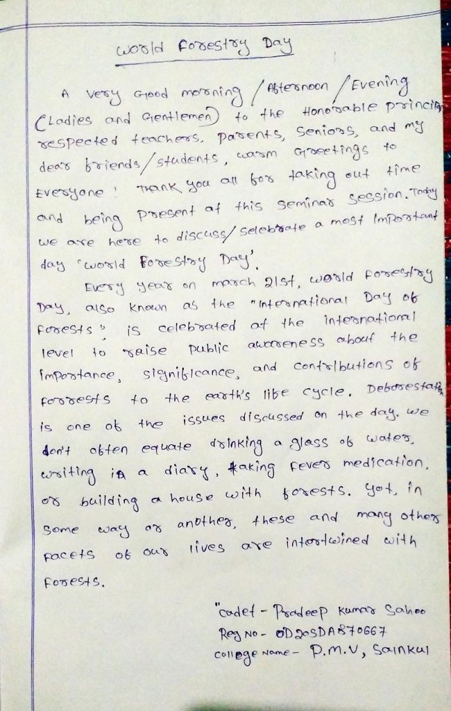THE CADET WRITTEN ESSAY ON WORLD FOREST DAY