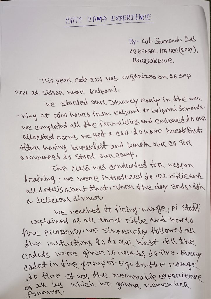 CADET-SOUMENDU DAS, WB19/SDA/156076, BASIRHAT COLLEGE, 48 BENGAL BN NCC (2COY), BARRACKPORE, KALYANI GROUP, WEST BENGAL@ SIKKIM DIRECTOR, NEW DELHI .