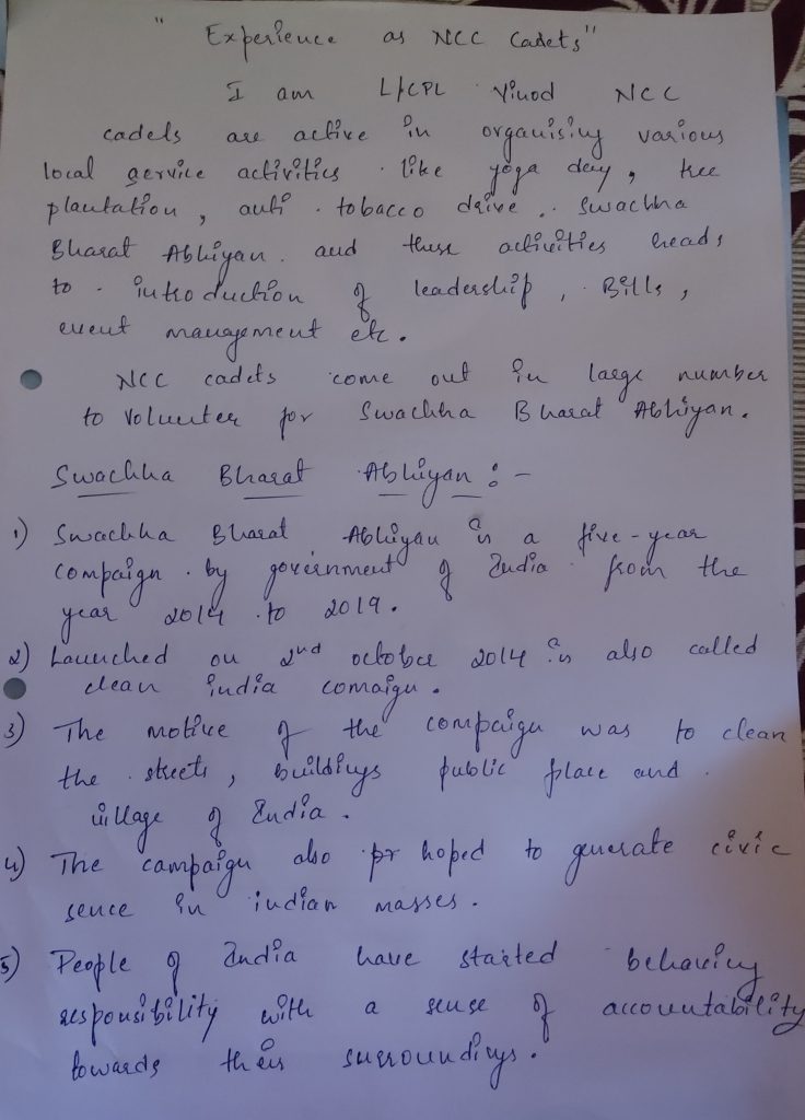 I am Cadet Swaraj Kumbar From Kar&Goa DT. Karnataka state. Bellary Group. 32 KAR BN NCC. Kalaburagi Institutions:- S.B College of science (SD)