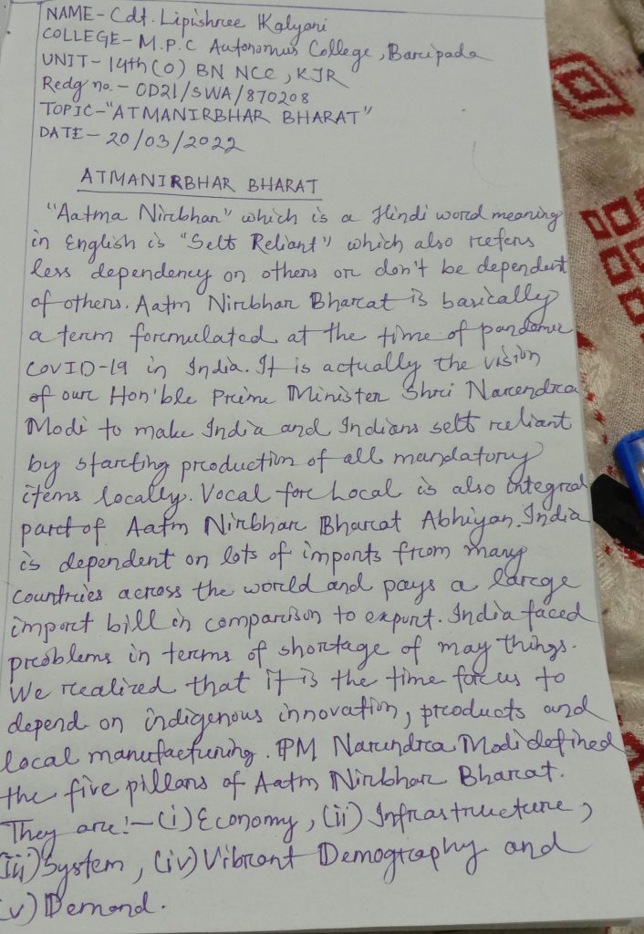 Anchalika degree mahavidyalaya padmapur, I AM ADITYA KUMAR NAIK 14(O) BN NCC, KEONJHAR