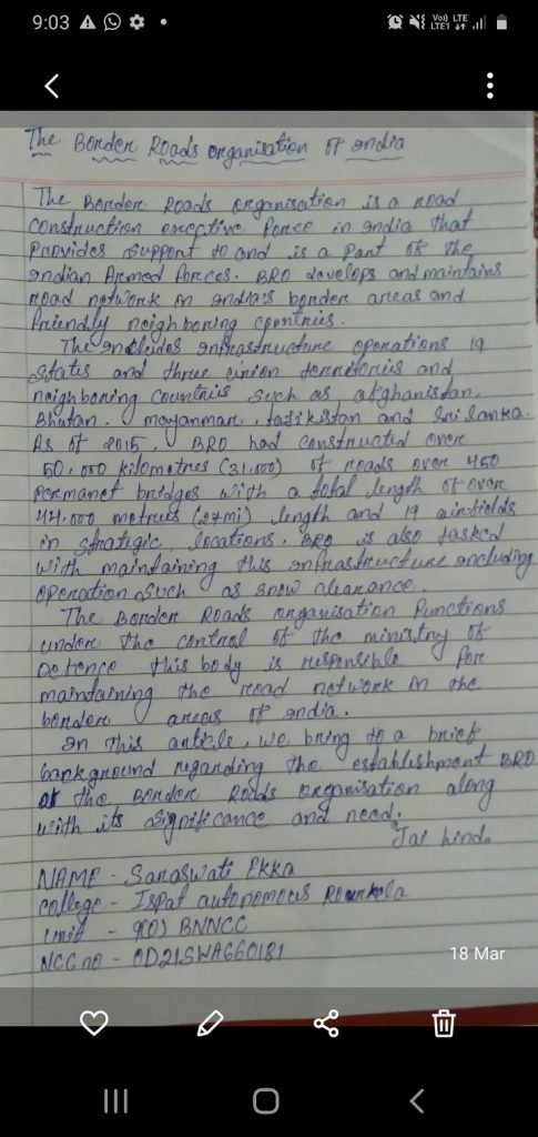 Saraswati ekka Unit- 9(o) BNNCC Ncc no - OD21SWA660181