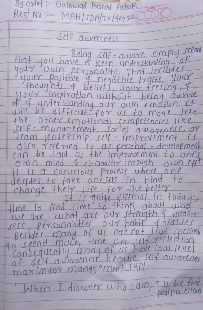 Article From CDT Gunjal Ganesh. On Kargil Vijay Diwas. From ACS College, lasalgaon.