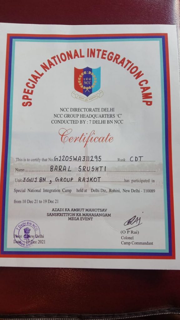 ▫️CADET PUSHAN ALAGIYA ▫️GUJ/SDF/20/316639 ▫️3 GUJ AIR SQN NCC ▫️RAJKOT GROUP ▫️GUJARAT DTE.