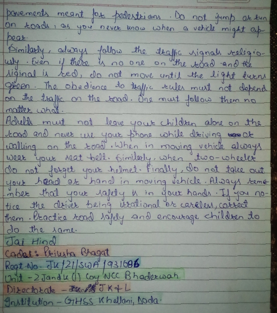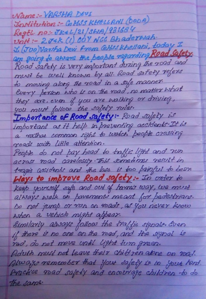 Jai hind I'm JUO Varsha devi from GHSSKhellani.My topic is about Road SAFETY