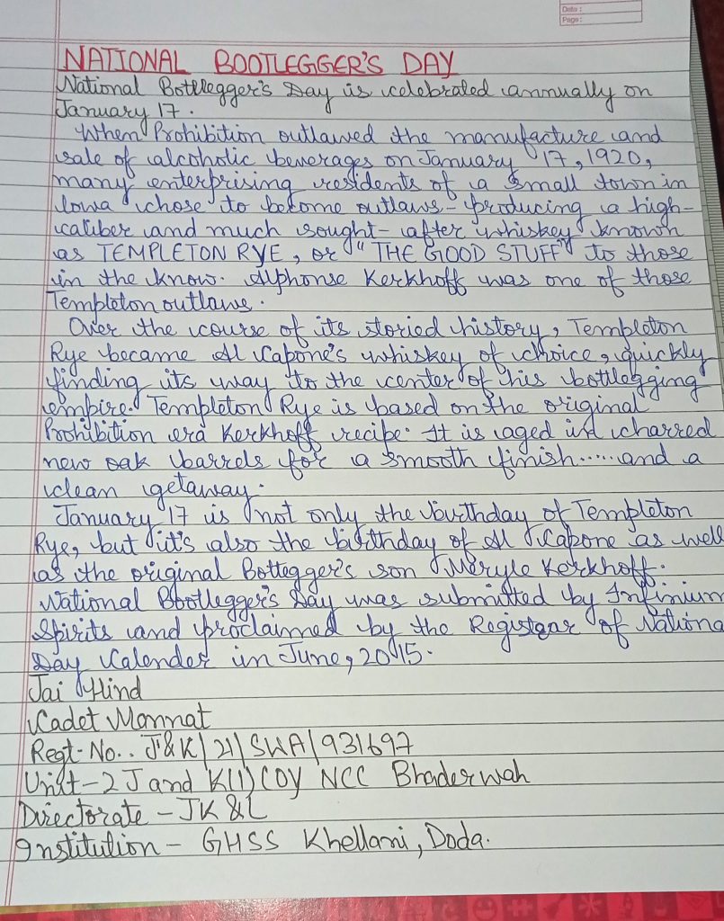 Jai hind Cadet Mannat Regt.no..JK&L /21/SWA/931697 Unit_2JandK (I)COY NCC Bhaderwah Directorate _JK&L Institution _GHSS Khellani ,Doda