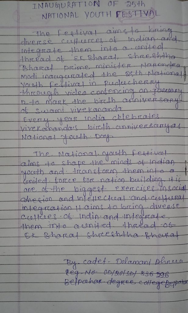 Cadet Swapnanil Das OD20SDN/830166 4(O) Naval Unit NCC, Bhawanipatna I like to write articles and reports.