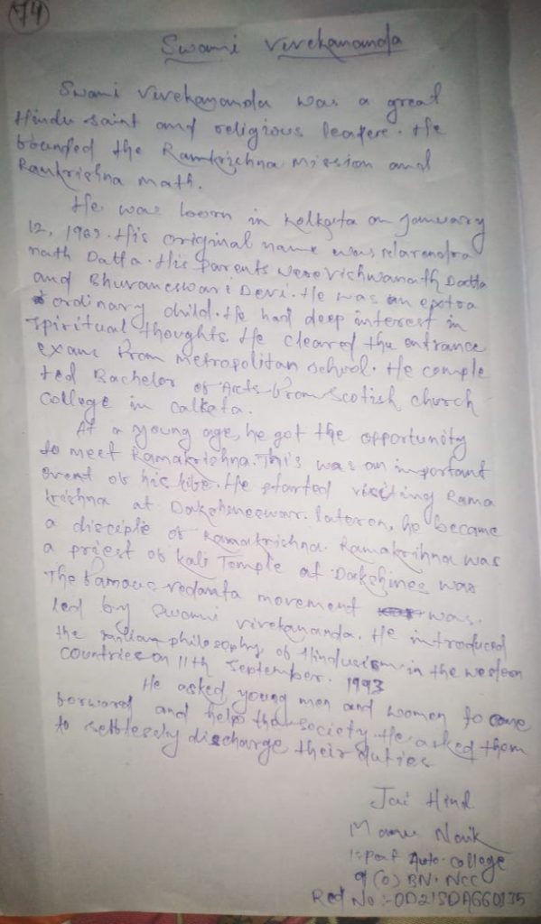 Reg. No - PD20SWA660094 Name - Aliva Topno Ispat auto collage 9 (O) BN,NCC Sambalpur group Odisha dorectret