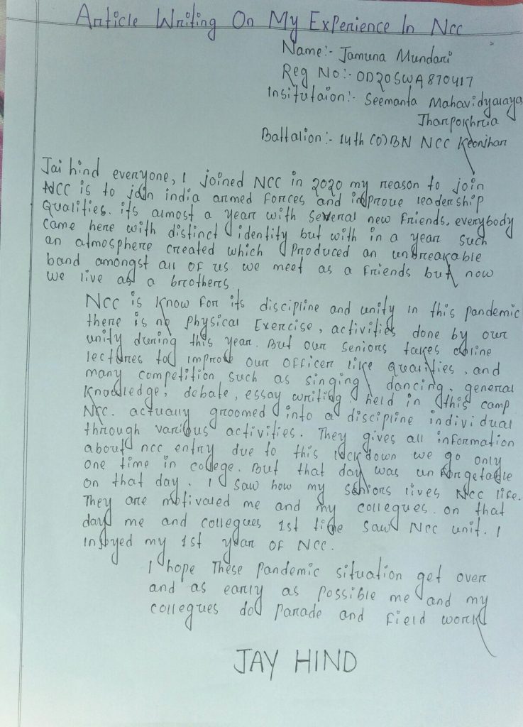 Article writing on my experience in Ncc