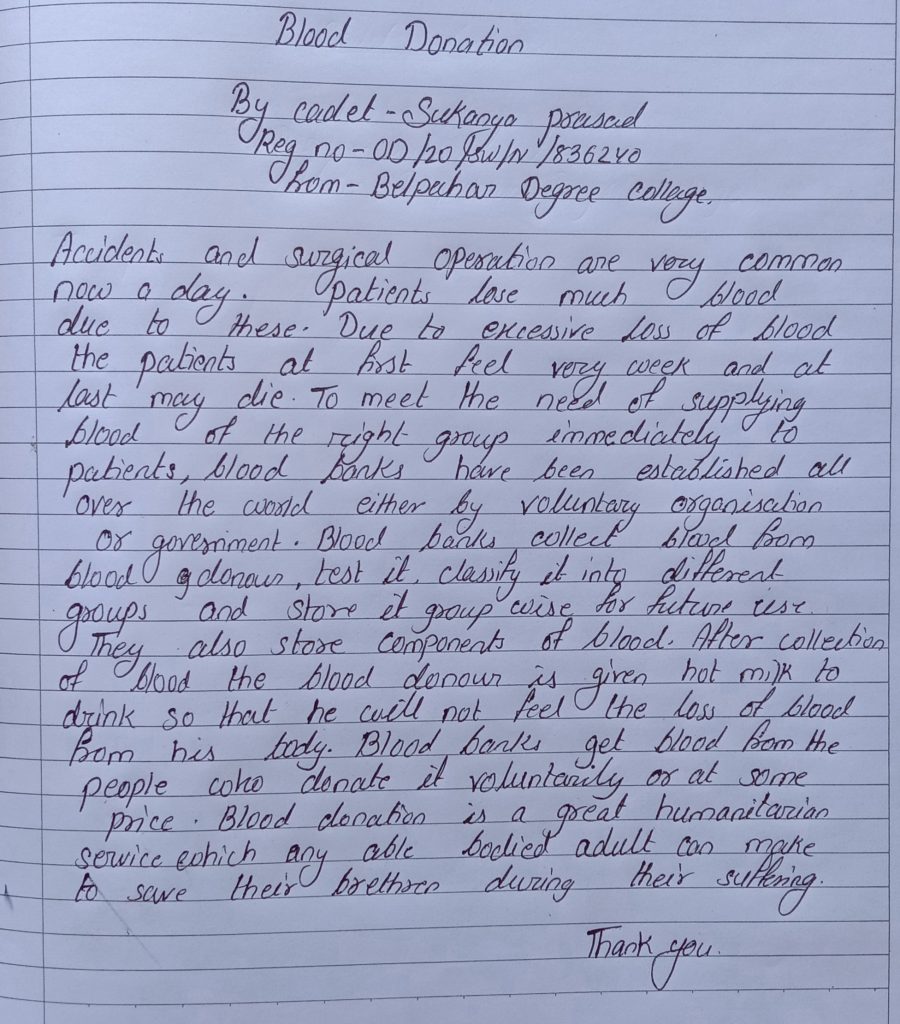 Name:Rama Chandra Sahoo Rank: Cadet Unit: 9(O) Battelion Odisha Regimental No.:OD/JDA/21/691066 Headquarter: Sambalpur