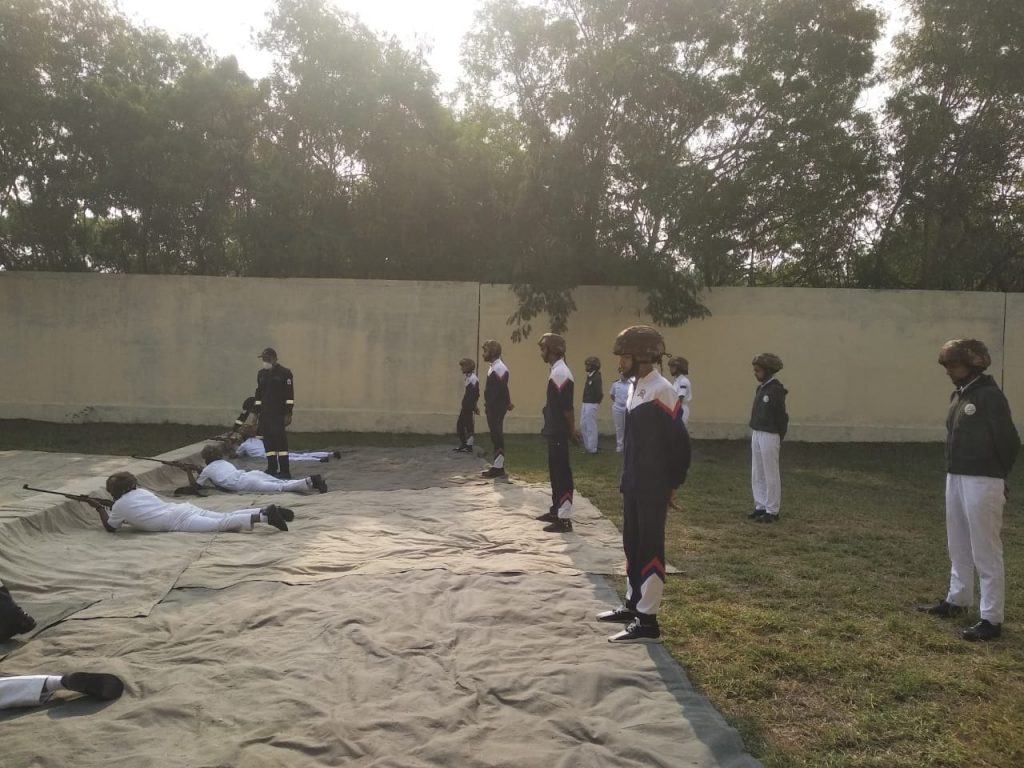 Weapon training by NCC cadets Jamngar Gujarat 8th Naval unit KV INS VALSURA jamngar Gujarat.