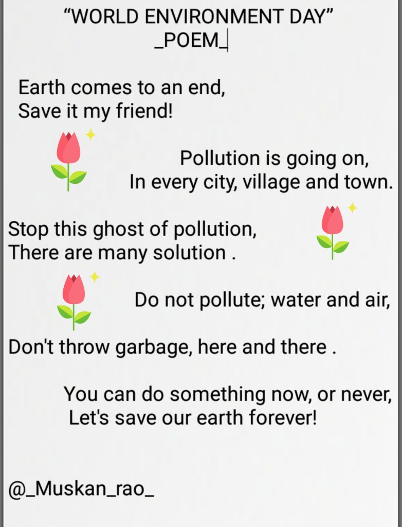 My name is Gunika. I am second year cadet and wanted to spread awareness about environment day. So I make a video and sent it on youtube (a digital platform) to make people aware of it. Hope my little effort make people aware. JAI Hind