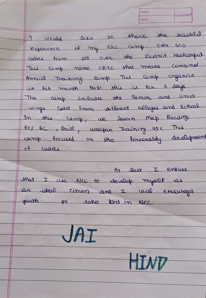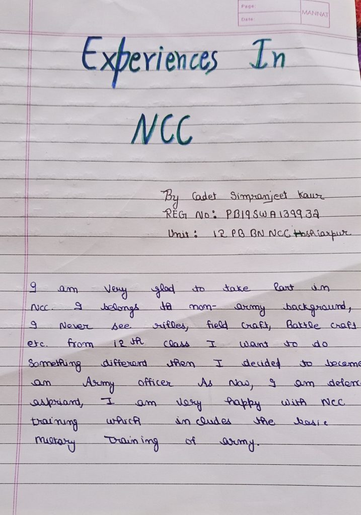 Cadet Manish Kumar Gupta Unit - 8 Punjab BN NCC Phagwara