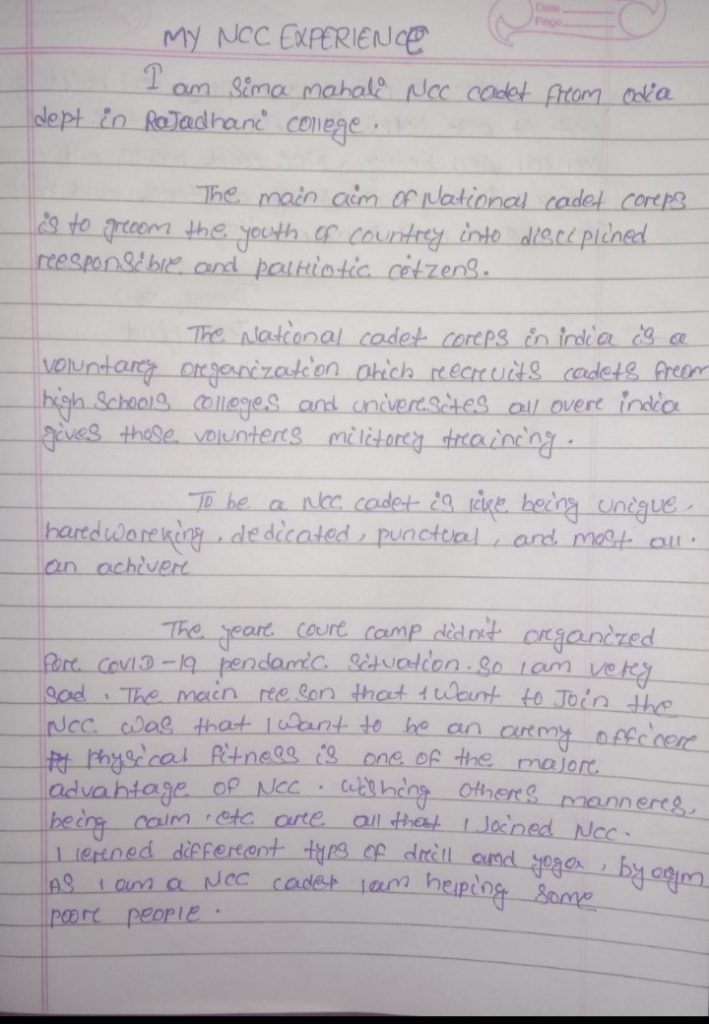 Cdt-Simamahali Reg no- od/20/sw/a/904-803 Unit-1odisha girls bn Group hq-cuttack