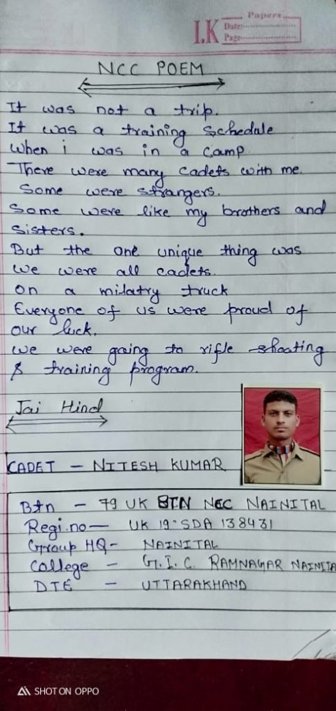 Cdt. Nitin Rai Regimental no. : WB/SD/19/210434 Unit : 5 Bengal Bn Directorate: West Bengal and Sikkim Directorate College: St. Joseph's College, Darjeeling