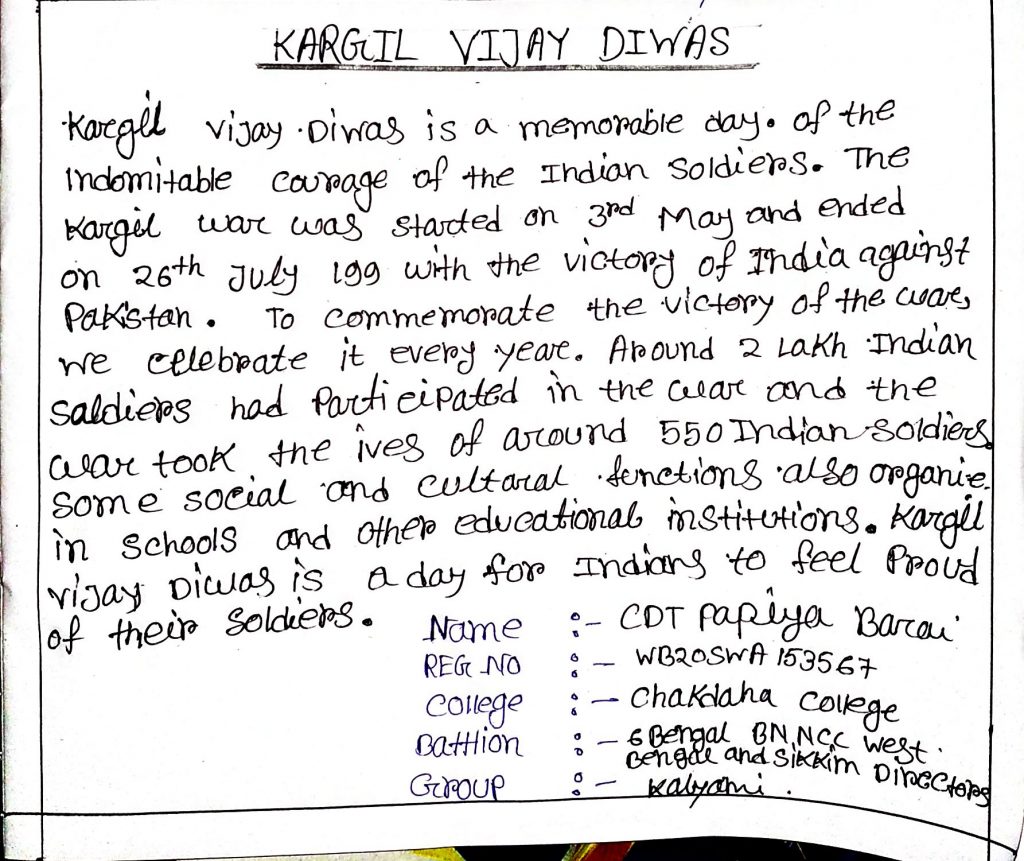 Name :- CDT Papiya Barai Reg No :- WB20SWA153567 COLLEGE :- Chakdaha College Battalion :- 6 BENGAL BN NCC WEST BENGAL & SIKKE DIRECTOR GROUP :- Kalyani Group