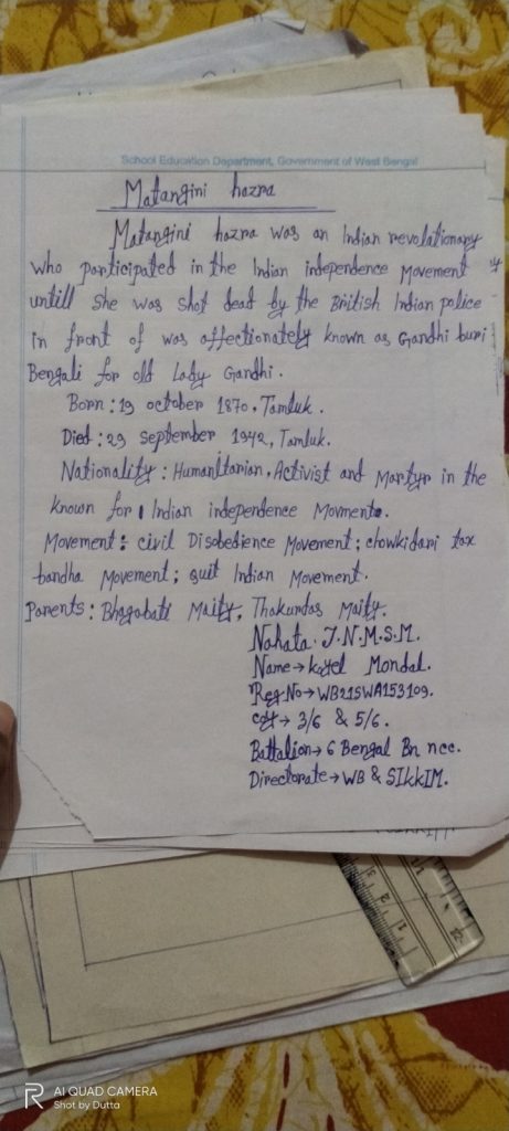 Nahata j.n.m.s college Koyel Mondal WB21SWA152109 6 Bengal BN NCC Kalyani