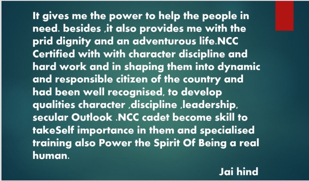 Ncc motivational me lot.