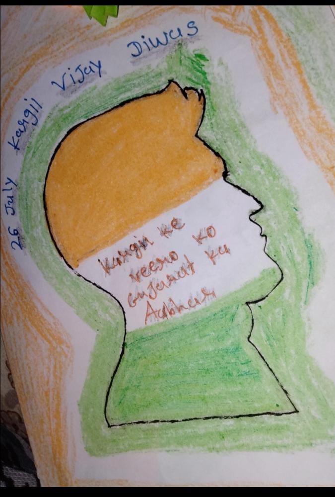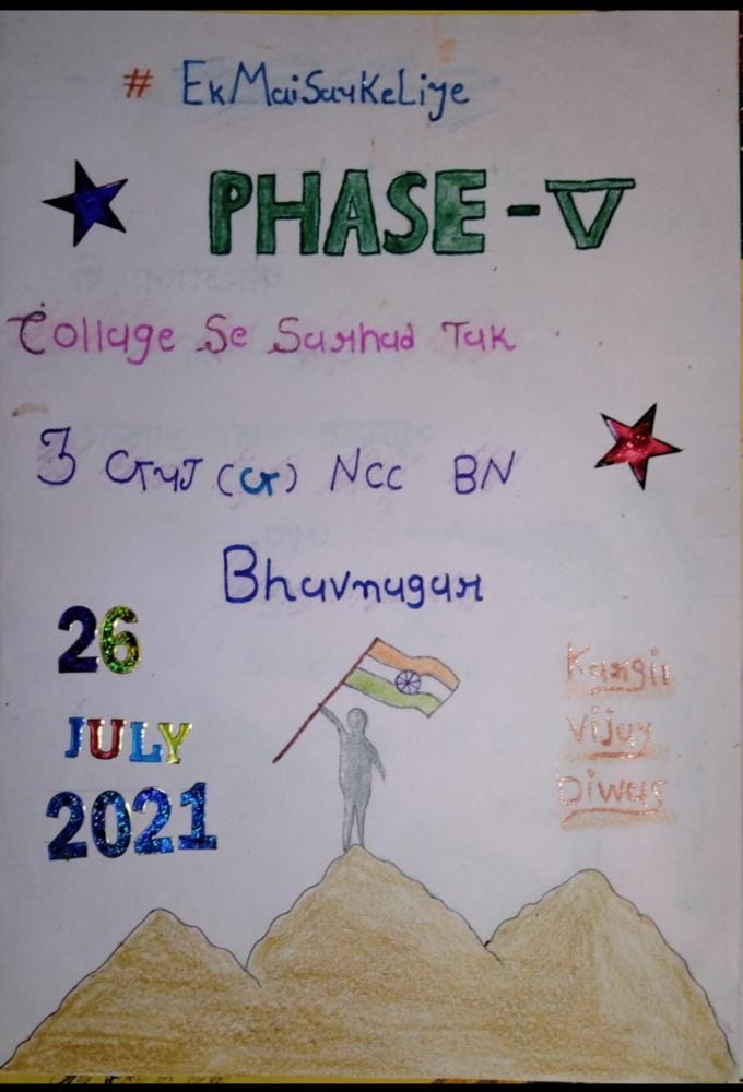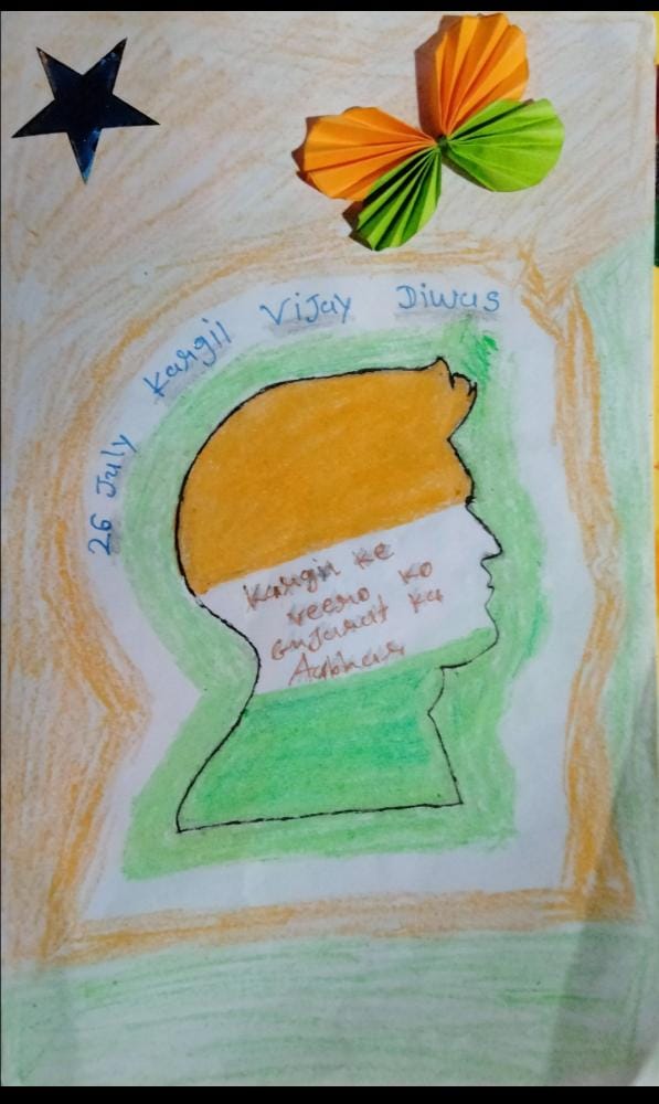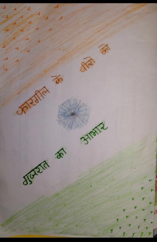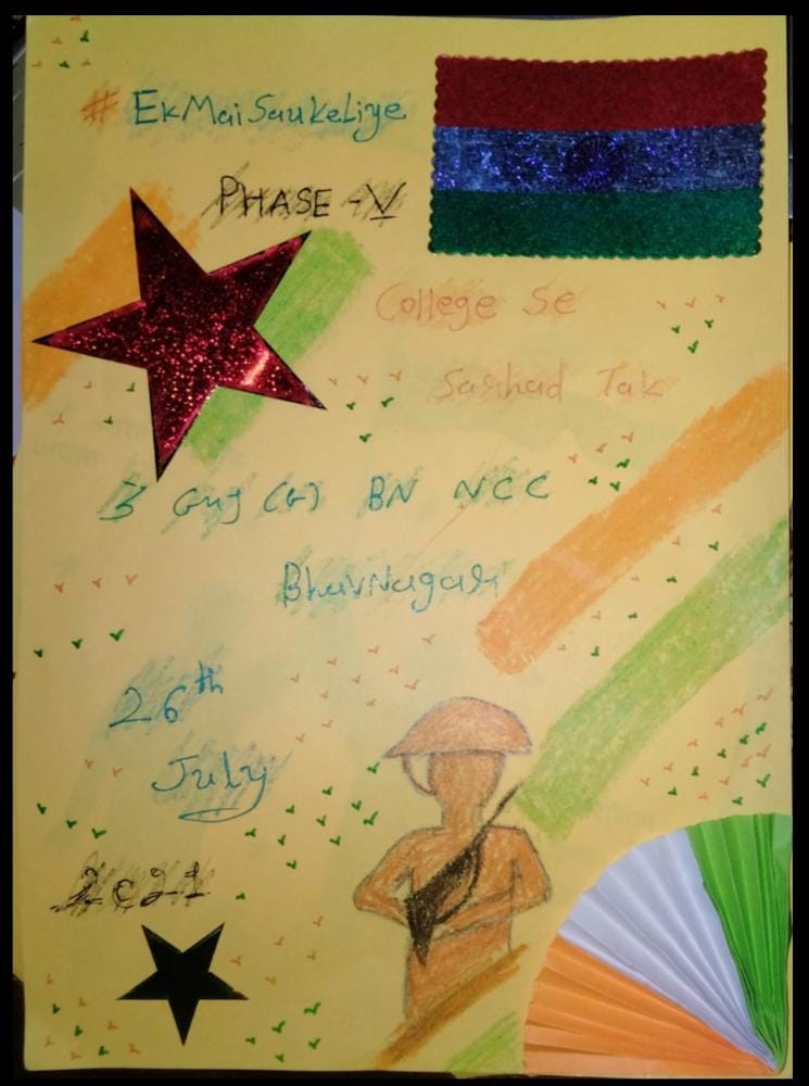 ZALA NISHABAD.#EkMaiSauKeLiyeph-5 Kargil Ke Veero Ko Gujarat Ka Aabhar. Beautiful cards hand made by Corporal of S.C.U. SHAH MAHILA COLLEGE WADHWAN of 3 GU J G BN NCC BHAVNAGAR to Express Gratitude & Whishes to our brave Soldiers on the borders