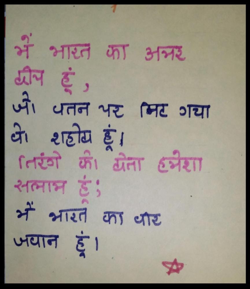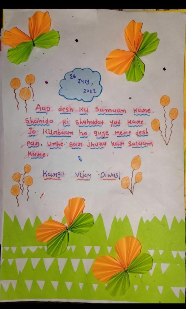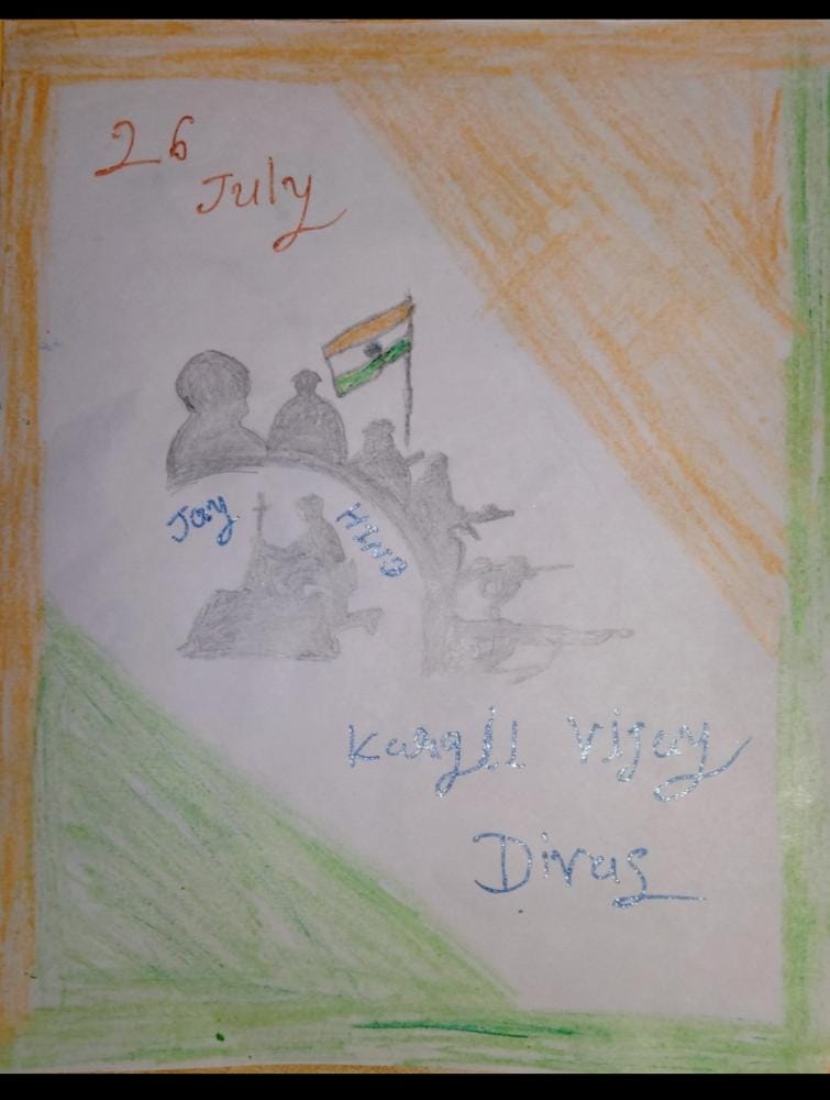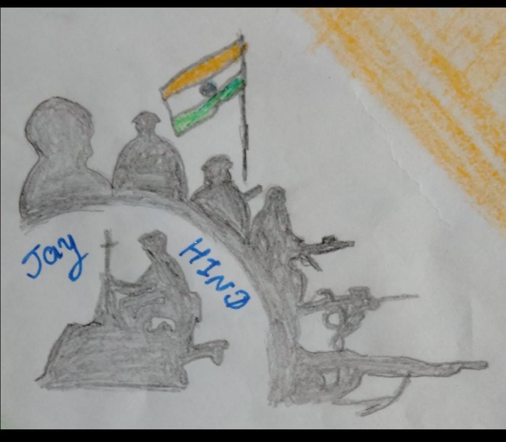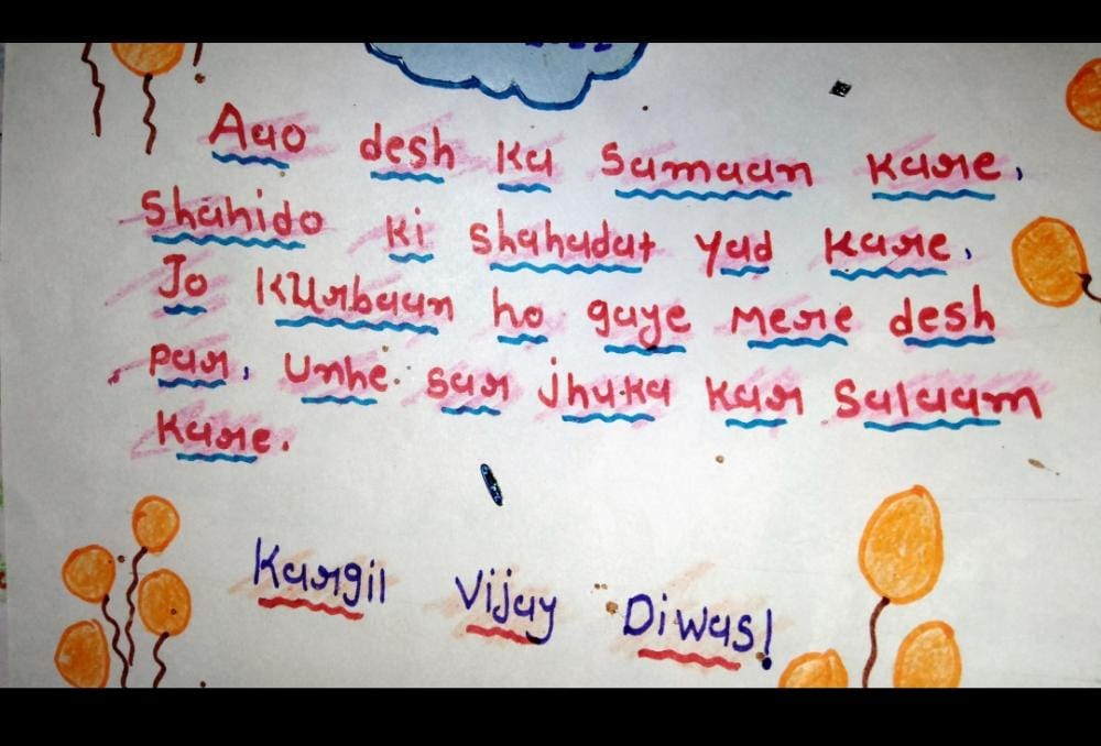ZALA NISHABAD.#EkMaiSauKeLiyeph-5 Kargil Ke Veero Ko Gujarat Ka Aabhar. Beautiful cards hand made by Corporal of S.C.U. SHAH MAHILA COLLEGE WADHWAN of 3 GU J G BN NCC BHAVNAGAR to Express Gratitude & Whishes to our brave Soldiers on the borders