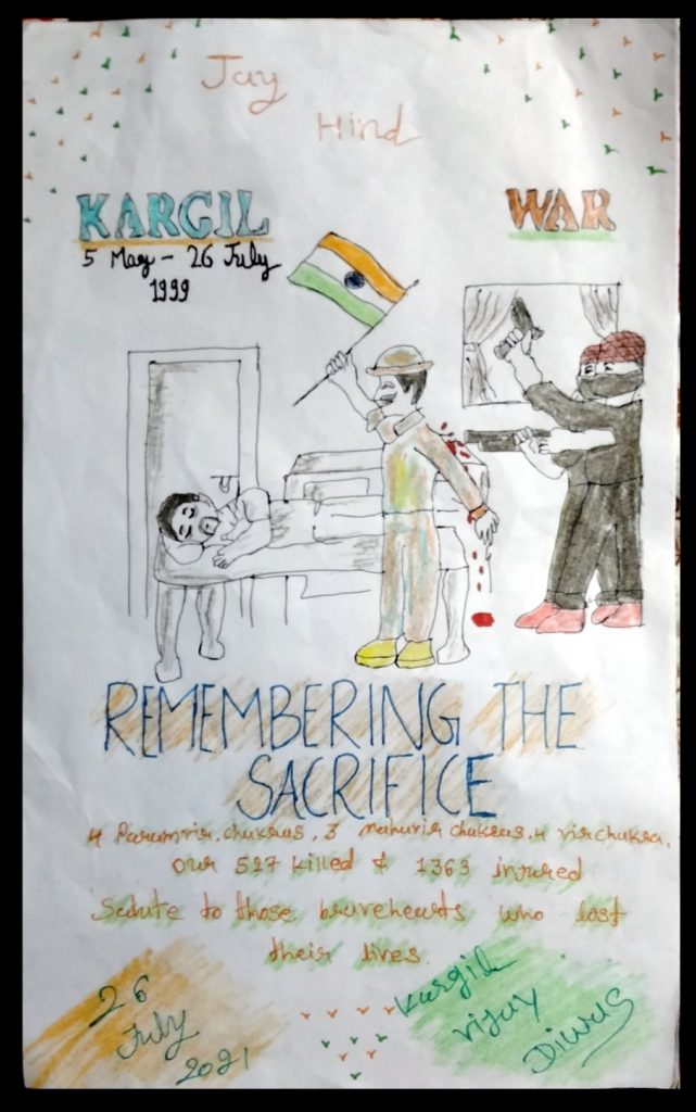ZALA NISHABA D.#EkMaiSauKeLiye ph-5 kargil ke veero ko gujarat ka aabhar. Beautiful cards hand made by Corporal of S.C.U.SHAH MAHILA COLLEGE WADHWAN of 3Guj G BN NCC BHAVNAGAR to Express Gratitude & Wishes to our brave soldiers on the borders