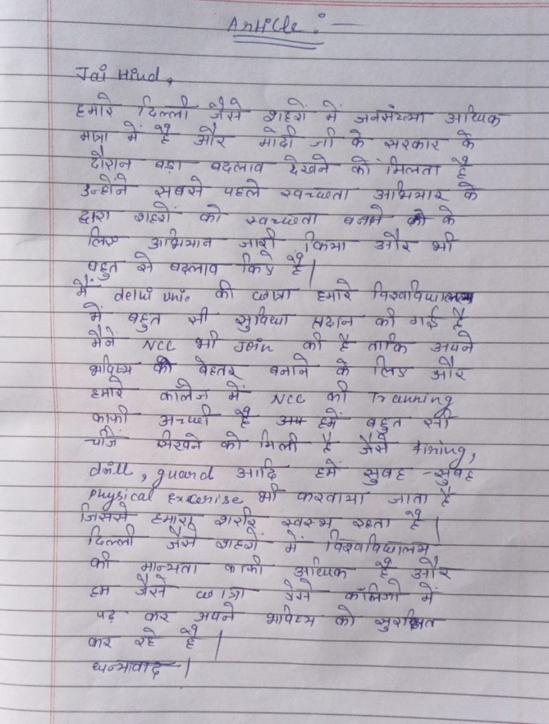Article about NCC training , Name - Anshika Singh, regimental no. DL20SWA100823, unit - 1DGBn