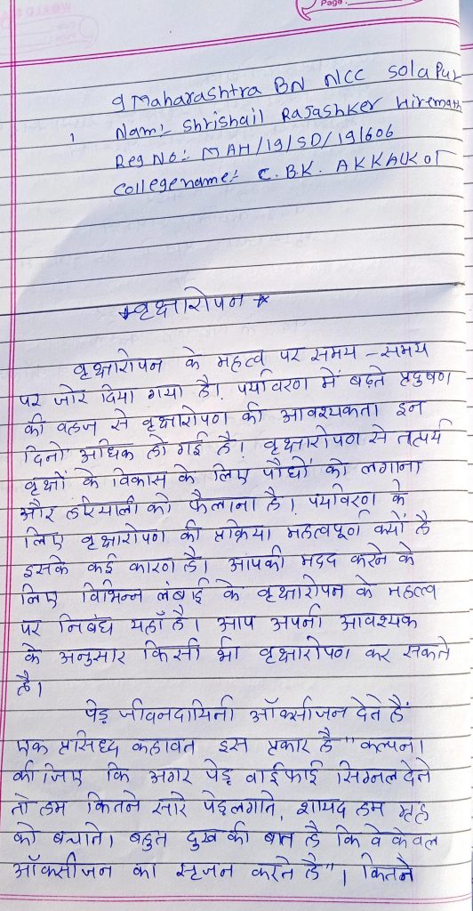 9mahrastra Bn Ncc Solapur Regimental no.MH/20/SD/921624 Cadet.Vankari Pramod Layappa College.C.B.K College Akkalkot
